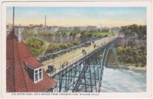 Na pocztówce z roku 1930 most nad wodospadem Niagara.